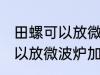 1、田螺不可以直接放进微波炉的。2、直接放进去可能会出现爆炸的情况,如果要用微波炉加热的话,建议用锡纸包住之后再放进微波炉加热会比 ....