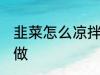 1、食材:香油20g、酱油20g、盐20g、蚝油20g、韭菜100g、干辣椒20g。 2、将干辣椒切碎备用,锅中加水烧开。 3、把洗好的韭菜放入锅中焯 ....